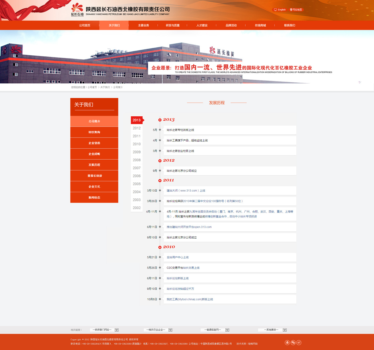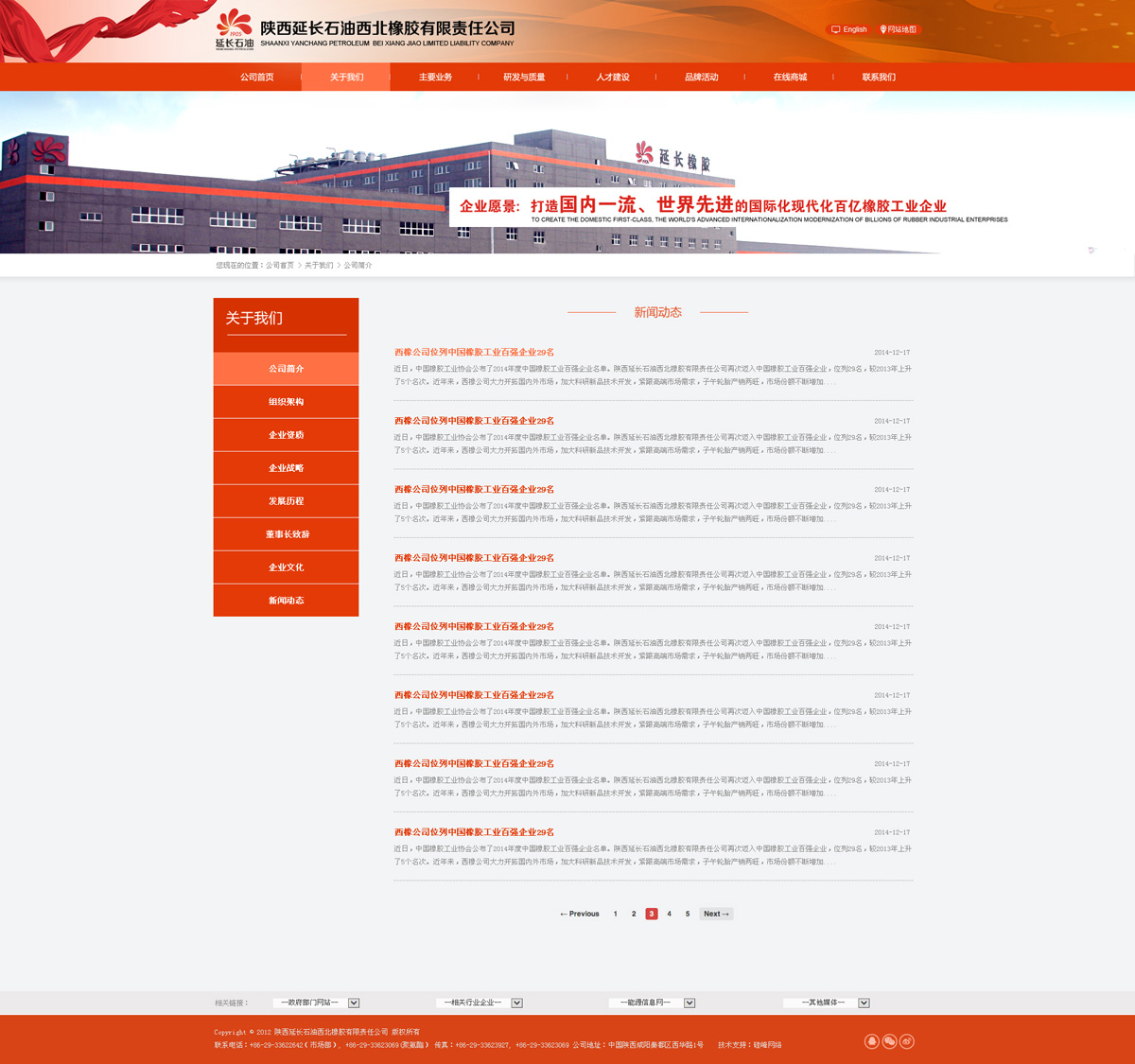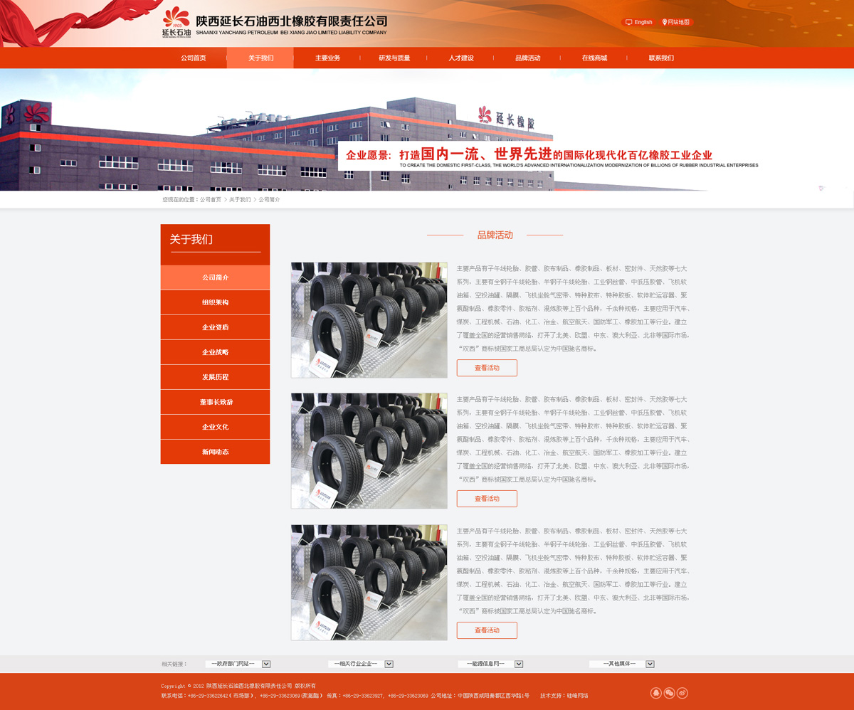 陜西延長石油西北橡膠有限責任公司是陜西延長石油(集團)有限責任公司的二級板塊公司,是全國唯一一家集天然膠種植與加工、子午線輪胎、橡膠制品制造銷售研發于一體的大型橡膠企業。位列中國膠管“十強企業”,中國橡膠制品“十強企業”,中國化工企業500強,中國橡膠工業百強企業第29位。